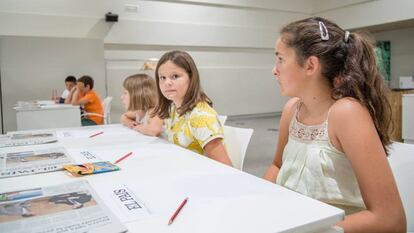 Una treintena de hijos de suscriptores y empleados del periódico visitan la redacción para asistir a un taller de periodismo