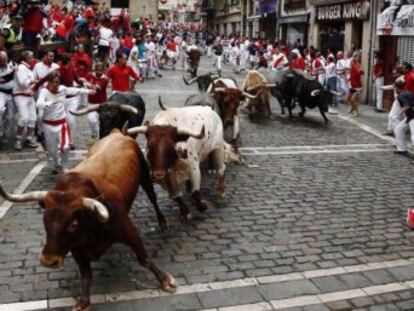 07.30 de la mañana. En Pamplona hace ya un rato que ha salido el sol y las calles empiezan a llenarse para esperar el encierro de los toros. Cuatro componentes de la empresa Opabinia Films acuden a sus respectivos puntos estratégicos para poner en marcha su plan: "San Fermín es una fiesta muy particular, jugamos con ventaja en casa", admite Íñigo Chalezquer, uno de los fundadores de esta empresa. Esta ha sido su rutina en los últimos ocho días de fiesta pamplonesa, con un solo objetivo: grabar los vídeos interactivos en 360 grados de los encierros para EL PAÍS. "Está estrictamente prohibido meter una cámara en el recorrido", afirma. Por eso se las ingenian. Las imágenes son limpias y permiten seguir el encierro como si se estuviera en la calle de Estafeta, en pleno apogeo de la fiesta. Cada punto cuenta con una carcasa que puede tener desde dos hasta siete cámaras GoPro. Luego, en la posproducción, hacen la magia que sumerge al usuario en el evento.