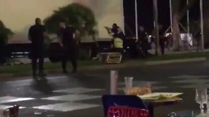 Es el momento en que la policía abatió al autor del atentado en Niza, Mohamed Lahouaiej Bouhlel,. Nader el Shafei, un ciudadano egipcio que se encontraba de vacaciones en la ciudad francesa, lo grabó todo con su móvil. Los agentes disparan repetidamente contra la cabina del camión, que había avanzado durante dos kilómetros dejando un sangriento balance de víctimas. Y entre los disparos, y después, gritos y gente que corre confusa en busca de refugio.