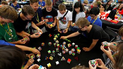 Ya hay campeón europeo de cubo de Rubik. El alemán Phillip Weyer ha resuelto este domingo el cubo en 7,88 segundos y ha logrado la segunda marca más rápida del campeonato. Un australiano, Feliks Zemdegs, conserva el primer puesto en la competición mundial con una marca de 7,07 segundos. "Practicar, practicar y practicar", esa es la clave para estar entre los mejores speedcuber", según ha comentado Weyer. La competición ha celebrado su séptima edición con 18 categorías; algunas tan peculiares como resolver el cubo con la ayuda de los pies.