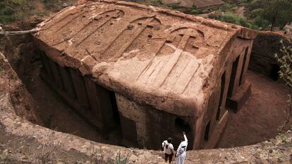 DE TODAS las culturas del África subsahariana, las de Etiopía son las más antiguas y las más impresionantes, porque nos han dejado grandes monumentos y una historia escrita en una lengua antiquísima. El conjunto más sorprendente es el de Lalibela, donde hay que mirar hacia abajo para ver los edificios, que están excavados en el basalto rojo. O descender hasta ellos para ponerse a su altura. Cuando se entra en el conjunto de iglesias de Lalibela, sobre todo en una celebración religiosa, como el Día de Ramos –que presenciamos durante la grabación del documental–, te unes a un río de gente envuelta en togas blancas que te acoge respetuosamente, como si fueras uno más entre la multitud de creyentes. Nada parece haber cambiado allí en siglos. Todo es auténtico, sincero, puro. Nadie es un turista en Lalibela. El mejor consejo para el extranjero es este: callar, mirar, sentir. Descalzarse, ser humilde.