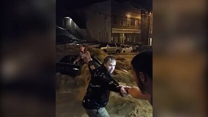 Cuatro hombres formaron una cadena humana para sacar a una mujer de su coche mientras lo arrastraba una riada en la ciudad de Ellicott (Maryland, EE UU) el pasado 30 de julio. Sara Arditti, dueña de una de las tiendas de la calle central de la ciudad, subió a las redes sociales la grabación en la que los rescatadores consiguen poner a salvo a la conductora. El vídeo tiene más de tres millones de visualizaciones. El rescate tuvo lugar durante una inundación en la ciudad norteamericana, en la que murieron dos personas y otras 120 tuvieron que ser rescatadas.