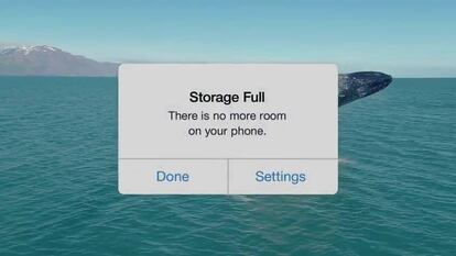 Un vídeo publicado por la compañía muestra cómo un teléfono, con mensajes estéticamente idénticos a los de Apple, se queda sin almacenamiento en el mejor momento