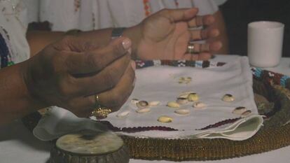 Estas Mao brasileñas, sacerdotisas de la religión Candomblé, leen la buenaventura en conchas marinas