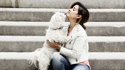 HACE SIETE años, la actriz Inma Cuesta decidió compartir su vida con una cachorrita que se ha convertido en la niña de sus ojos. El día que la recogió diluviaba y pensó en llamarla Lluvia, pero su hermana la convenció para ponerle un nombre más alegre: “Fue así como la llamé Rumba”. La protagonista de Capitán Kóblic es alérgica al pelo canino, por lo que buscó una perra que no lo soltara. “Me dijeron que era de la raza bichón maltés, pero he descubierto que es cotón de tuléar, que es igual pero más guapa”, presume. Cuesta tenía entonces 29 años y el desconocimiento hizo que la comprara. Hoy se muestra partidaria de la adopción y ha buscado familias para muchos animales. “España es uno de los países en los que más se abandona. Se deberían eliminar las tiendas de mascotas”.