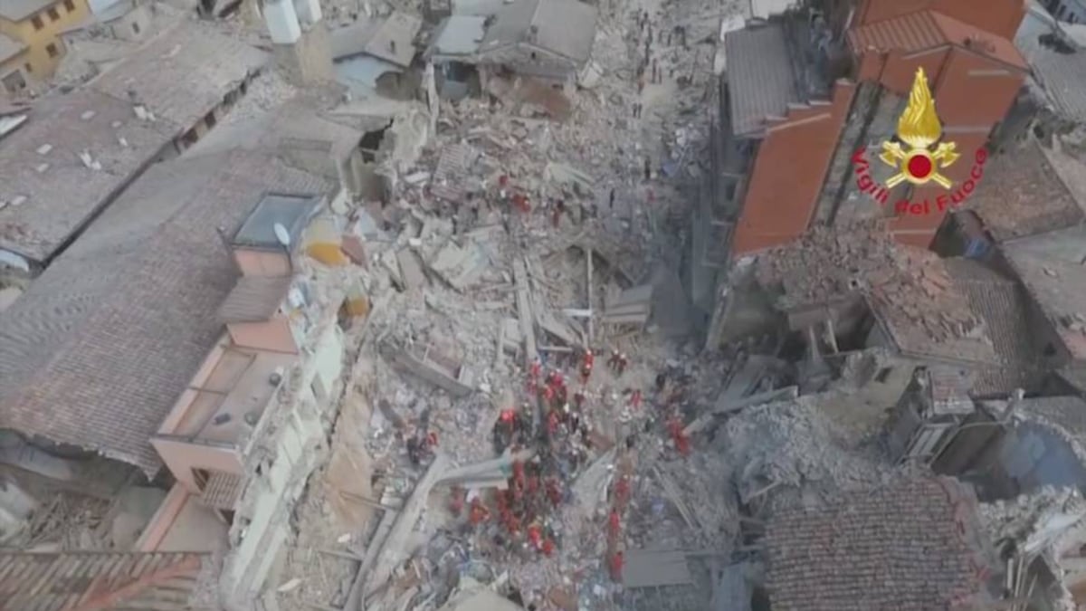 Un dron muestra imágenes aéreas del impacto del terremoto en Amatrice