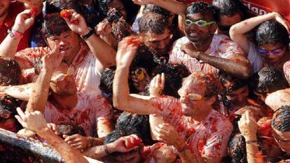 Los más de 22.000 participantes citados este miércoles en Buñol, en Valencia, han participado en la tradicional Tomatina 2016, la guerra de hortalizas en la que se lanzan 160.000 kilogramos de tomates. Una fiesta que este año se ha sensibilizado más que nunca con la lucha contra la violencia machista y la homofobia. Un petardo ha marcado a las 11 de la mañana el inicio de esta batalla, que se celebra siempre el último miércoles de agosto y comienza con la entrada de los camiones con esta particular munición.