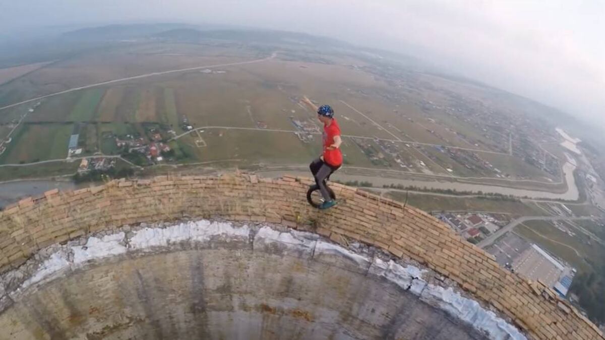 En la localidad de Targu Jiu, en Rumanía, se encuentra una central hidrotérmica de carbón de la época comunista. Aunque está medio demolida y completamente abandonada, aún hay quien le encuentra uso. Flaviu Cernescu, un rumano de 34 años, trepó los 250 metros de altura de la chimenea del edificio con la intención de hacer malabares y montar en monociclo en su cima. El 24 de agosto, Cernescu subió un video en su canal de YouTube donde se le ve rodando sobre la torre mientras un amigo le graba.