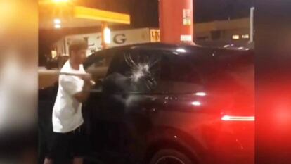 Andrea Iannone destroza la ventanilla de su Porsche a martillazos