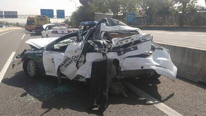 Un autobús embiste a un coche de la Guardia Civil