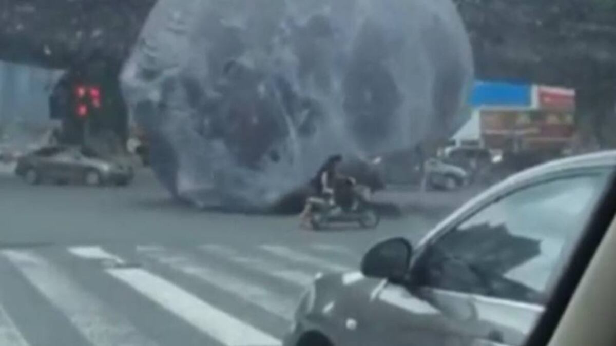Un hinchable gigante recorre sin control la ciudad de Fuzhou, en China