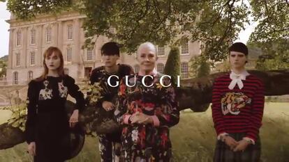 La actriz de Una canción para Marion (2012) y Crimen y Castigo (2002) comparte el protagonismo con jóvenes modelos en una campaña que ha sido dirigida por Glen Luchford con un estilismo de Joe McKenna, y con la canción My Perfect Cousin, de Damian O’Neill y Michael Bradley, de fondo. Tal como anunció la marca, la campaña da inicio a una colaboración de tres años entre Gucci y el castillo de Chatsworth, con la que llevaran a cabo actividades culturales.