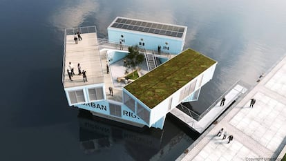 Puede que pronto sean los pisos más codiciados de Copenhague. La capital danesa, una de las ciudades más caras, estrenará a finales de octubre unos pisos flotantes para estudiantes por 650 euros mensuales. Conocido como Urban Rigger, el complejo es un diseño de arquitectos locales y usa antiguos contenedores de carga interconectados entre sí por un pontón de hormigón de 245 metros cuadrados. Alrededor de esa área común se organizan 12 apartamentos, a los que no les falta una terraza y alguna zona verde. Según sus diseñadores reconvertir estos contenedores en vivienda es mucho menos costoso medioambientalmente que refundirlos. Además, paneles solares situados sobre uno de los techos sirven para el sistema de calefacción, que emplea recoge el agua directamente del mar. En verano, refrescarse será aún más fácil: bastará con un salto para bañarse en la bahía de Copenhague.