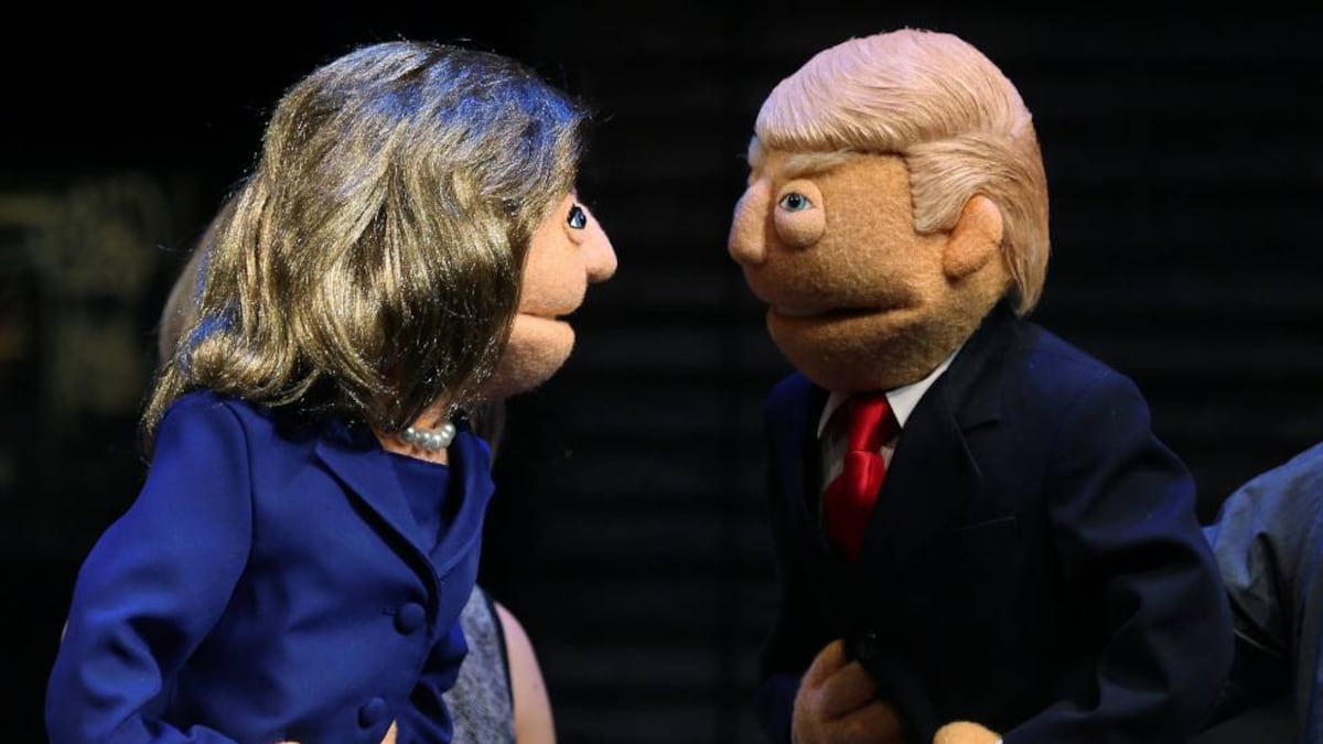 Dos cómicos representan el enfrentamiento entre los dos candidatos a la Casa Blanca utilizando marionetas
