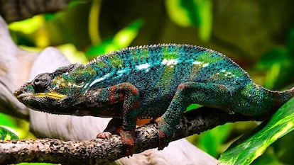 La lengua del camaleón es el doble de su cuerpo, con lo que permanece enroscada dentro la boca
