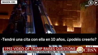 Un nuevo fantasma del pasado se presenta en la campaña de Donald Trump. Entre denuncias de acoso por parte de varias mujeres, un vídeo de 1992 pone de manifiesto lo que, en el mejor de los casos, sería una broma de muy mal gusto por parte del candidato republicano a la Casa Blanca. La grabación se realizó para un programa especial navideño de la cadena CBS ante unas escaleras mecánicas flanqueadas por un par de árboles de Navidad. “¿Vais a subir?”, se escucha a Trump, que no aparece en el plano, al dirigirse a un grupo de niñas a las que tampoco se ve. Es entonces cuando una voz muy joven le responde afirmativamente y el magnate responde con una supuesta gracia: “Tendré una cita con ella dentro de 10 años, ¿os lo podéis creer?”. La identidad y la edad exacta de la menor a la que se refería Trump no han trascendido. Aunque tampoco es descartable que se conozca próximamente, ante la dinámica que ha tomado la campaña presidencial en EE UU.
