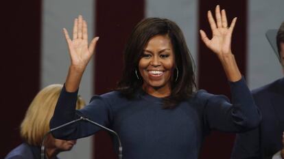 No es controvertido, ni polémico, ni discutible. Ha quedado ya muy lejos de cualquiera de esos adjetivos y ha dado el salto a lo impresentable, lo inadmisible y lo punible. Todo en Donald Trump —el discurso, el tono e incluso los gestos— forma parte de un imaginario vetusto y polvoriento de patrones y señores, de salas en penumbra donde las mujeres se sentaban sobre las rodillas de los hombres, de puros largos de humo denso y de braguetas fáciles entre piernas sometidas, de órdenes y mutismo como respuesta. Pueden elegir el siglo que quieran para esa fotografía, incluso este, porque a pesar de todo, el candidato republicano sigue en la carrera hacia la Casa Blanca. Una situación inconcebible que Michelle Obama reflejó de forma contundente en Manchester (New Hampshire), y que Hillary Clinton sintetizó en un claro tuit: "Las mujeres tenemos el poder de parar a Trump".