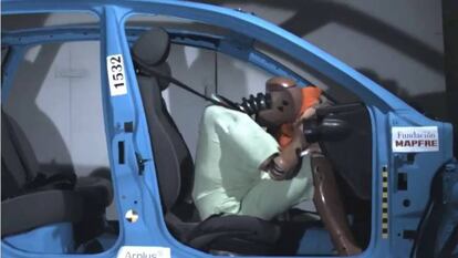 El documento señala que si un bebé de seis meses viaja en el regazo de un adulto sería automáticamente despedido hacia delante en caso de accidente y se vería aplastado gravemente por la persona que lo lleva encima. Si lo hiciera un niño de 6 años, sentado en el asiento trasero pero sin cojín elevador, su cinturón de seguridad se desplazaría de tal forma que podría provocarle lesiones graves en el cuello, y el cuerpo acabaría deslizándose por debajo del mismo, con consecuencias fatales. El uso de un sistema de retención infantil homologado y adecuado al peso del es imprescindible para frenar el desplazamiento del niño y minimizar el riesgo de sufrir una lesión.