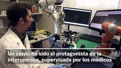 Médico y paciente forman parte de la reducida élite mundial con acceso a la cirugía robótica. Se usa aún en un escaso número de operaciones (entre un 2 y un 5%, según varias estimaciones), la mayoría de urología, ginecología o cirugía general. Solo un tercio de las intervenciones asistidas con robot tienen lugar fuera de Estados Unidos, el país donde se fabrica y donde se han vendido la mayoría de los autómatas como este. ¿Qué detiene su expansión? El precio de los equipos (tanto del Da Vinci, ideado para operar en tejidos blandos, como de otros más limitados, especializados en neurocirugía o traumatología) y el coste por operación (hasta 3.200 dólares en el caso del ingenio de Intuitive Surgical), ya que las pinzas y demás instrumental deben ser reemplazados tras un número determinado de operaciones.