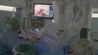 Da Vinci es el autómata más conocido en los quirófanos del mundo, 24 de ellos españoles, 13 en hospitales públicos. Lleva tres millones de operaciones desde 2000 y su intervención estrella es precisamente esta que se magnifica hasta 20 veces en los monitores del quirófano del Hospital Clínico de San Carlos, en Madrid: la extracción de la próstata.