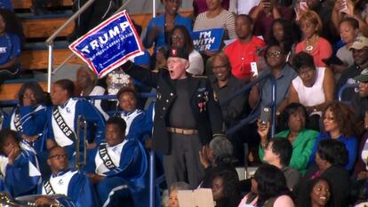 El presidente de EE UU, Barack Obama, respondió de manera educada a un simpatizante de Donald Trump que esta semana irrumpió en un mitin de la campaña de las elecciones estadounidenses. Obama daba un discurso cuando el espontáneo, de avanzada edad, comenzó a gritar con una pancarta del candidato republicano en la mano. "Vivimos en un país que respeta su palabra", exclamó el presidente.