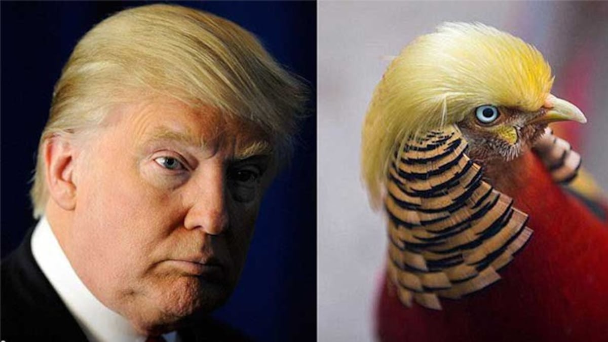La semejanza del tupé del presidente electo de EE UU, Donald Trump, con el plumaje de un faisán chino ha convertido a este pájaro en el "doble" oficioso del candidato republicano. Ambos lucen un dorado tupé cuyo parecido ha hecho de este pájaro uno de los animales más famoso en las redes sociales. Este ave se llama Little Red, tiene cinco años y es un faisán de oro chino. Está en el zoo Hangzhou, en el safari park de la provincia de Zhejian (China) y el cuidador ve aún más semejanzas con el futuro presidente estadounidense, como por ejemplo la expresión de sus ojos. La imagen de este pájaro junto a la de Donald Trump se ha viralizado por las redes sociales en pocos días.