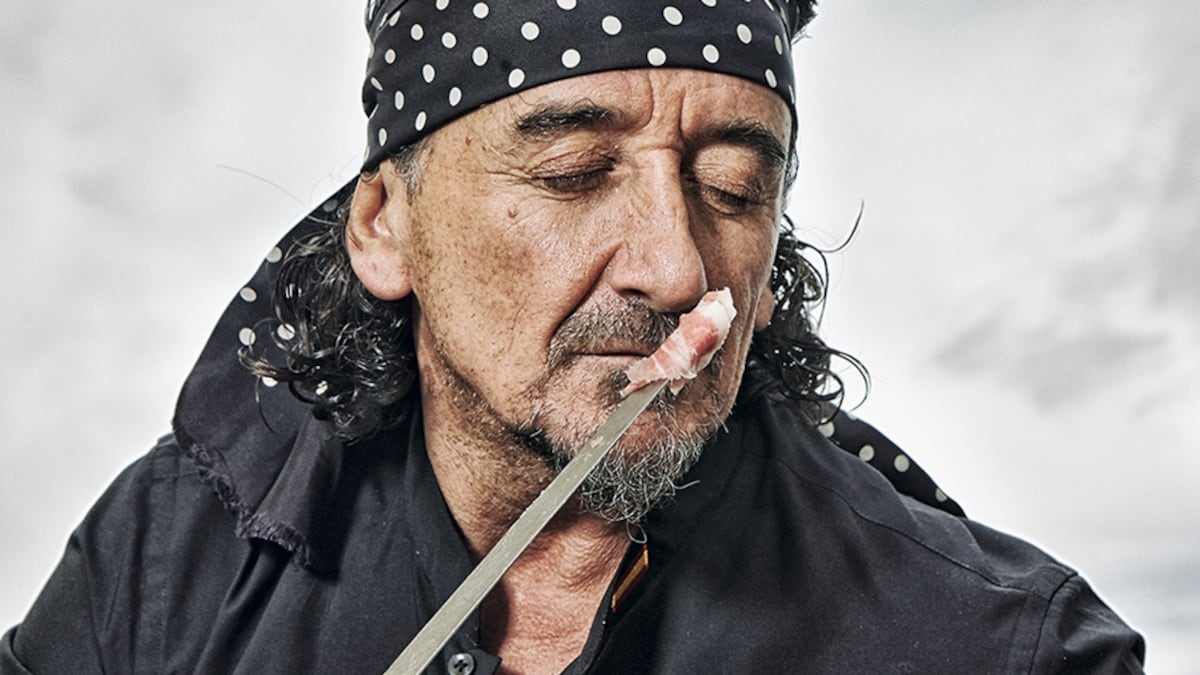 De planta ligera, verbo infatigable y un pañuelo atado en la cabeza como seña de identidad, Sanchidrián saca la pose de torero en cuanto agarra el cuchillo y no duda en declamar las bondades del jamón con una estudiada prosa poética. Su arte le ha convertido en protagonista de artículos en publicaciones como The New York Times y le ha colocado cara a cara con los líderes, deportistas y creativos más destacados del planeta. “Nadie me ha dicho nunca que no le haya gustado”, asegura el abulense (El Fresno, 1962) que se codea con Obama, el rey Juan Carlos y Richard Gere. “En sitios como India es cierto que al ver una pata cruda se retraen, pero en cuanto lo prueban se rinden a sus pies”.