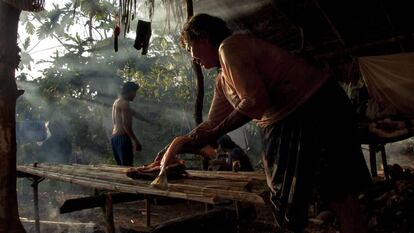 Son las tres de la madrugada y toda la familia está ya en pie. Los hombres machacan el barbasco, una raíz cuyo jugo funge de veneno paralizador de peces. Las mujeres mascan la yuca para elaborar chicha, la bebida alcohólica energizante más popular de la selva. Las puntas de hierro de los arpones artesanales, que en unas horas servirán para ensartar a los bocachicos que abundan en el agua, resplandecen a la luz de la lumbre. A orillas del río Rotuno, esta familia de Sarayaku, en la Amazonía ecuatoriana, está lista para iniciar el ritual de pesca colectiva junto al resto de su comunidad. Cuando el sol aparece en el horizonte, los hombres suben a las canoas y remontan el río para soltar el barbasco, cuya sustancia blanquecina convierte el agua en leche y adormece a los animales. Mientras, las mujeres aguardan río abajo y machete en mano, dispuestas a llenar de peces las cestas que cuelgan de sus cabezas. La pesca, como llaman en esta comunidad de la suroriental provincia de Pastaza a este ancestral método de captura colectiva para la subsistencia, tiene lugar una vez cada seis meses, aproximadamente. Para garantizar la reproducción de los peces, está prohibido realizar la pesca más a menudo. Como tantos otros pueblos indígenas, los kichwas de Sarayaku han creado normas encaminadas a conservar su medio ambiente y garantizar la sostenibilidad y supervivencia del hábitat amazónico, que según ellos también es morada de espíritus.