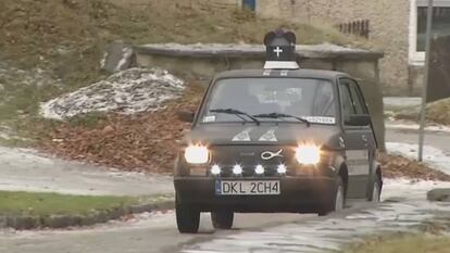 Una luz en el capó de un coche se ilumina intermitentemente bajando por las montañas de Boleslawow, en Polonia. Se podría confundir con una sirena corriente de no ser porque tiene forma de cruz: en realidad se trata del Fiat 126 con el que el padre Krzysztof Kauf ofrece un servicio de emergencias espirituales las 24 horas al día. “La gente necesita a un cura que no esté encerrado en una iglesia, sino que les acompañe en su día a día”, sentencia el religioso.