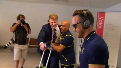 Sin embargo, con lo que se encontraron fue con un guardia de seguridad del equipo dispuesto a no dejarles pasar. “Es el tercer incidente de un reportero acosando agresivamente a nuestros jugadores con flagrante falta de respeto hacia el protocolo enviado a los medios”, asegura un comunicado de Moosajee. El mismo día del incidente, el equipo había avisado a la prensa australiana de que Du Plessis no comentaría nada hasta que no se celebrara una audiencia. Sin embargo, el Canal 9 se personó tanto en el hotel donde se hospedaban como en el aeropuerto, donde su reportero se saltó todas las medidas de seguridad, intentando acceder con “un objeto no identificado”, según el informe (un micrófono, según las imágenes), al acusado.