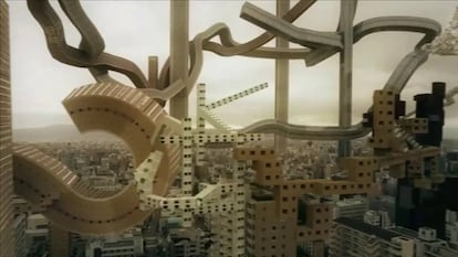 Los rascacielos de la ciudad del vídeo se retuercen como si estuvieran vivos