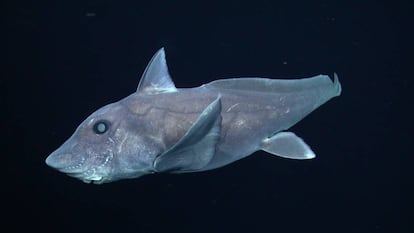 Hydrolagus trolli entró en el Registro Mundial de Especies Marinas en 2002, cuando la descubrieron Didier y Seret en las aguas profundas de alrededor de Australia y Nueva Zelanda. Ambos científicos describieron la especie a partir de 23 ejemplares que capturaron y le pusieron el nombre de trolli en honor a Ray Troll, un artista que dedicó su vida a estos extraños animales del fondo del mar. Pero nunca hasta ahora se había visto ningún ejemplar fuera del sur del océano Pacífico. “Los seres humanos solo han visto este tiburón fantasma 30 veces. Los 23 del descubrimiento inicial y las siete que hemos grabado nosotros en vídeo”, cuenta Lundsten. Esto se debe principalmente a que es una especie que vive en aguas profundas. “Además, son solitarios, por lo que no se congregan en las grandes zonas predecibles. De hecho, cada vez que los hemos visto, estábamos realizando otras investigaciones. Por eso decimos que los hemos encontrado por casualidad”, explica Lundsten.