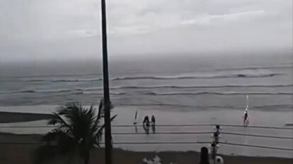 Taline Campos, de 25 años, caminaba sola por la orilla del mar, en Praia do Sonho, São Paulo (Brasil), cuando un rayo impactó sobre ella. Los servicios de emergencia tardaron menos de 15 minutos en atender a la joven, que tuvo que ser sedada y entubada, según informa Eduardo Martos en su cuenta de YouTube, donde subió el vídeo. A continuación, fue trasladada al hospital con un paro cardíaco.