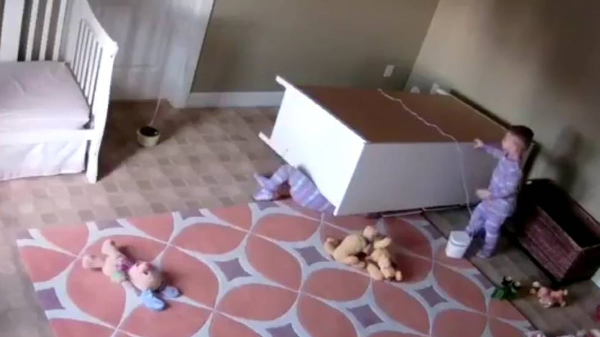 Un niño de dos años salva a su hermano de quedar atrapado bajo un armario