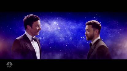 Puede que su traspiés con el telepromter no le permitiera a Jimmy Fallon disfrutar de su mejor noche, pero nadie negará al presentador de los Globos de Oro de 2017 un arranque espectacular. En el número inicial de la gala de los Premios que entrega la Asociación de la Prensa Extranjera de Hollywood, Fallon simulababa estar enfrascado en un atasco de coches junto a estrellas como Nicole Kidman, Amy Adams o John Travolta, además de otras de la televisión como algunos de los protagonistas de las series Juego de Tronos o Stranger Things. Como cierre de su coreografía, Fallon reservó un homenaje a la gran ganadora de la noche, la película musical La La Land, junto a Justin Timberlake.
