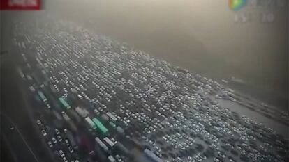 La autopista G4 que une Pekín y Hong Kong sufrió un enorme atasco a principios de enero durante la operación de tráfico que tuvo lugar por las vacaciones de fin de año. Cientos de coches se amontonaban en los 50 carriles que conforman el peaje.