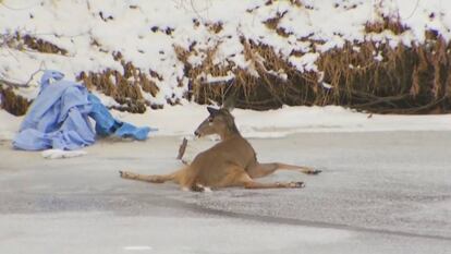 El día no pintaba bien para este ciervo en Connecticut, Estados Unidos: un grupo de coyotes le había perseguido y en la huida, cayó sobre un río helado. La superficie resbaladiza le impidió salir durante horas, hasta que varios testigos llamaron a la policía. "Le dije a mi mujer que lo iba a rescatar y, por supuesto, ella me dijo que no lo hiciera", cuenta Robert Bylykbashi, uno de los transeúntes que pasó por el lugar.