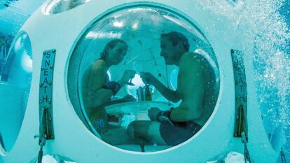 La revolución gastronómica no tiene freno. Cada día surgen propuestas para atraer a comensales ávidos de nuevas experiencias. En The Pearl, un restaurante ubicado en Bruselas (Bélgica), las comidas se sirven en una burbuja, dentro de una piscina y a cinco metros de profundidad. Para acceder a la esfera, convenientemente climatizada, los clientes deben ponerse bañador, una bombona de oxígeno y bajar buceando. Los camareros les sirven un menú de 99 euros en botes cerrados herméticamente en el que no faltan una ensalada de langosta, foie o champán.