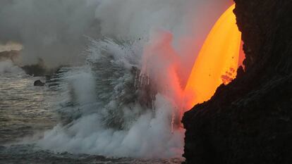 Desde el derrumbe de un acantilado en año nuevo, el volcán Kilaue en Hawái vuelca material incandescente en el océano Pacífico