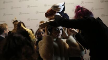Cibeles se parece a un casino de Las Vegas: no sabes ni qué hora es ni qué tiempo hace fuera. Todo ello despista bastante. Acabas de salir de un desfile y, entre que esquivas a la marabunta, te cuelas en el Kissing Room —la sala donde acuden los invitados tras el show a tomar una copa y atender a los medios— y vuelves a la sala de prensa, comienza el siguiente. “¿Pero no había una hora y media entre desfile y desfile?”, me pregunto todos y cada uno de los días que estoy aquí. Claro, una cosa es lo que ponga en el calendario y otra, la realidad.