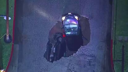 Un socavón se ha tragado a dos vehículos en Los Angeles, California. Más allá de las impactantes imágenes, solo una mujer ha resultado herida. El material ha sido grabado por unos informativos de una cadena de televisión desde un helicóptero. El socavón ha sido consecuencia de una tormenta, considerada la más grande que ha sacudido el Estado desde hace seis años. Debido al temporal, al menos dos personas han muerto en los últimos días.