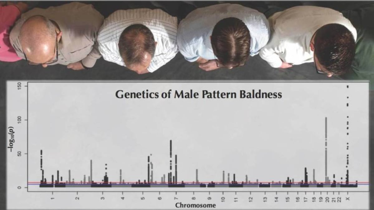 De los hombres que participaron en el estudio, 16.700 no tuvieron caída del pelo. Otros 12.000 tuvieron pérdida leve de cabello; 14.000 tenían pérdida moderada y 9.800 tenían calvicie severa. Los investigadores relacionaron el patrón genético de cada individuo con la tendencia a la calvicie y descubrieron que aquellos con una cantidad menor que la media de los 287 genes asociados con el problema tenían menos probabilidad de volverse calvos (solo el 14% de ese grupo lo eran y el 39% no había perdido nada de cabello). De hecho, el 58% de hombres con un riesgo genético 10 veces superior a la media registraron mayor pérdida de pelo.
