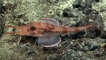 Grababan el fondo del océano cuando encontraron a un pez dando literalmente un paseo por el lecho marino. Se trata de una espátula, un pez cubierto de placas con una característica muy peculiar: sus aletas pectorales tienen unos radios duros y algunos de esos radios se quedan suelos al no estar recubiertos por la membrana de la aleta. “El pez usa esos radios finos y duros para andar por el fondo del mar -explica en declaraciones a Reuters el biólogo marino Bruce Mundy- esa es la forma de locomoción habitual de las espátulas en lugar de nadar como hacen la mayoría de los peces”. Pero aunque sea un comportamiento común en la especie, las imágenes no dejan de ser poco habituales. Las captaron el 17 de febrero los tripulantes del Okeanos Explorer, un buque científico de la Administración Nacional Oceánica y Atmosférica de EE UU (NOAA, por sus siglas en inglés), durante una expedición en aguas de Samoa Americana, un conjunto de cinco islas situadas en el Pacífico Sur. La filmación, a unos 500 metros de profundidad, fue posible gracias a Deep Discoverer, un batiscafo operado por control remoto.