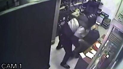 Un fuerte estruendo anuncia la entrada de una banda de atracadores a una tienda de compraventa de oro en Barcelona. Uno de los ladrones llega a la trastienda, donde se encuentra la caja fuerte, y golpea con la pistola a un empleado que se encuentra allí. Pero en un despiste del agresor, sucede algo inesperado y la víctima, un hombre de 59 años, logra ponerse a salvo y llamar a la policía. Los hechos sucedieron este miércoles sobre las 13.00 en una bocacalle de la Avenida Meridiana de la Ciudad Condal y quedaron registrados en una grabación de seguridad difundida ahora. Según fuentes de los Mossos d'Esquadra citadas por Europa Press, el empleado de la tienda precisó ser trasladado a un hospital aunque su pronóstico no era grave. Y los atracadores, cuyo número se desconoce, lograron huir del lugar. Los agentes creen que se trata de la misma banda que la semana pasada reventó a golpe de maza un negocio similar en el barrio de Gràcia.