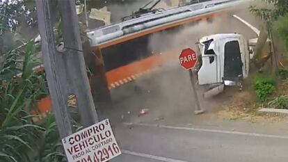 Dos personas fallecieron al ser arrollado un camión por un tren en un paso a nivel en Requínoa (Chile). El accidente se produjo la semana pasada, a plena luz del día, y fue grabado por una cámara de seguridad. Los fallecidos son el conductor del camión, que cruzaba la vía sin respetar una señal de stop, y un asistente del maquinista.