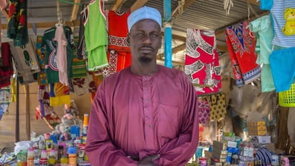 "Estuve dos veces en Arabia Saudí, antes vivía bien y podía ahorrar algo", explica. "Ahora apenas gano para dar de comer a mi esposa y a mis tres hijos". Asegura que con el cierre de la frontera con Nigeria, su tienda está en horas bajas, ya que cada vez es más complicado conseguir variedad de productos y que los clientes aún tienen miedo. "Poco a poco el mercado ha ido recobrando vida, pero ahora la gente viene, hace sus compras y se vuelve a ir rápido".
