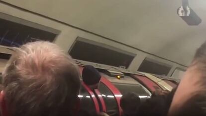 Un pasajero quedó retenido en esa posición ante el asombro del resto de viajeros