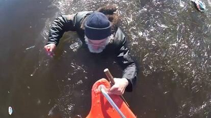 El rescate de un pescador con más de medio cuerpo atrapado en un lago congelado