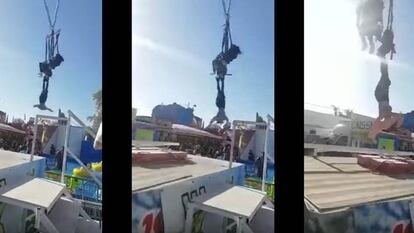 Una niña, colgada bocabajo y toda velocidad al romperse una atracción de feria