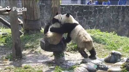 Dos osos panda se han convertido una vez más en la sensación de las redes sociales al ser captados jugando en un columpio en China. Uno de los animales, que viven en una de las reservas naturales del país, aparece en el vídeo sobre la mecedora, mientras el otro lo balancea en el juguete fabricado con una rueda de neumático. Gracias a las reservas, China ha logrado remontar el número de ejemplares de osos panda. Aunque en 2016 fallecieron sus miembros más longevos —primero Jia Jia, que ostentaba el récord de 38 años, y luego Pan Pan, que llegó a cumplir los 31—, los osos panda tienen razones de sobra para mirar al futuro con optimismo.